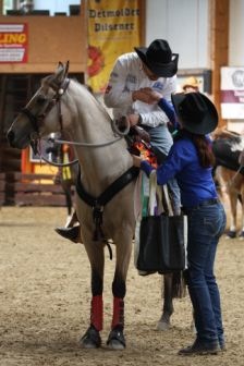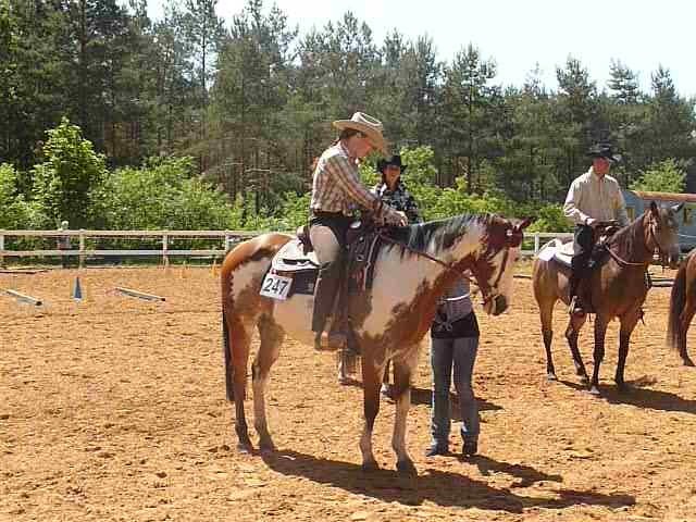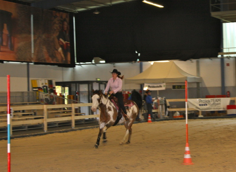 Im Trail war das Pferd irgendwie nicht beim Reiter, alles andere war interessanter und in der letzten Prüfung, der Horsmanship, gegen spät Nachmittag reichte die Konzentration der Reiterin nicht mehr aus. Sie hat eine Pilone falsch angeritten und war somit out of pattern!